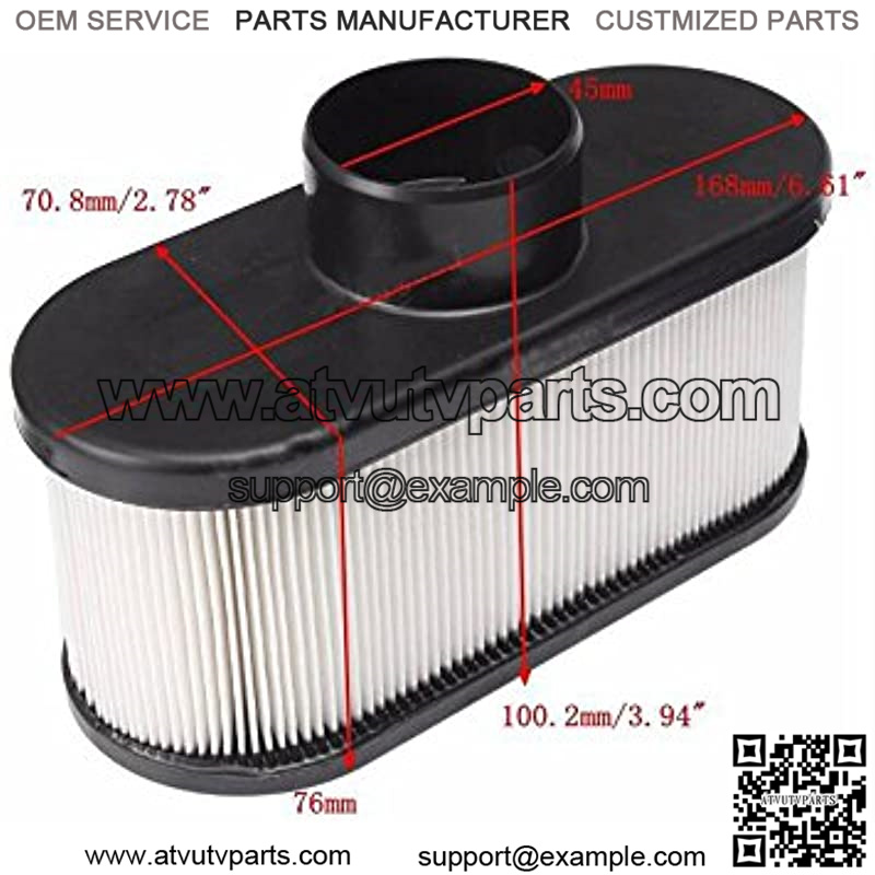 Lawn Mower Air Cleaner Width: 2- 3/4″, Length: 6-5/8″, Height: 3″. Does not include clamp.