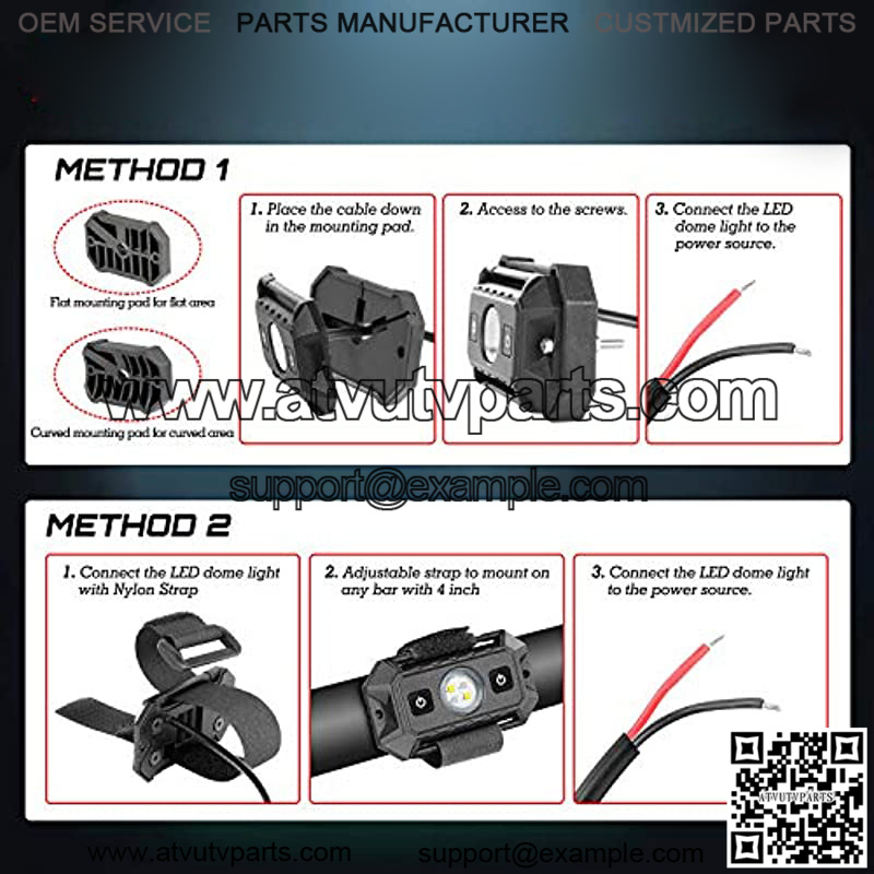 BUY WITH CONFIDENCE – Box comes with LED Dome Lights with with switch, adjustable velcro strap, Curved mounting pad, Flat mounting pad, Zip Tie, screws and manual. We provide 12 MONTHs 100% quality assurance and 24H hassle-free after-sales service.