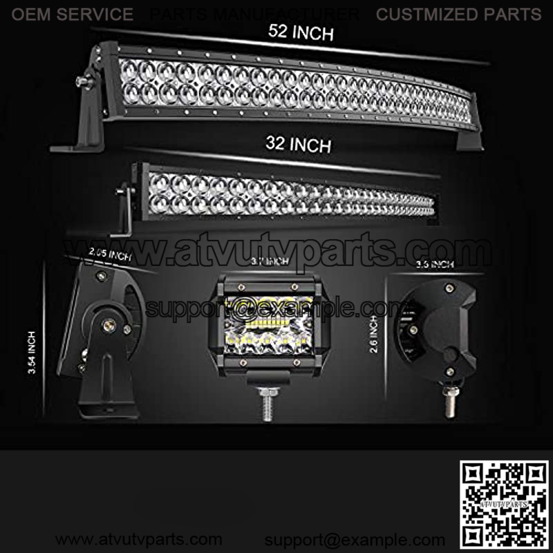 Package Included : 1x 52Inch 300W 5D Curved Led Light Bar + 1x 32Inch 180W 5D Curved Led Light Bar + 4x 4Inch 60W Led Cube Pods + 2x Rocker Switch Wiring Harness. We provide 2 years quatity warranty making sure you get risk-free lights and 100% satisfation aftersale services.