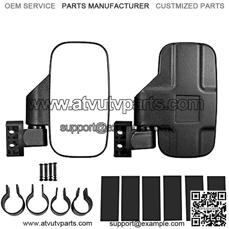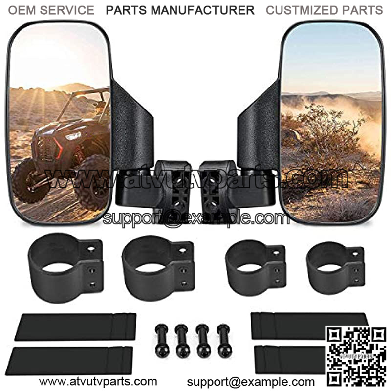 Package List- 2 x UTV side mirrors for driver and passenger side), 2 set of mounting clamps(1.75″ and 2″), 4*rubber pads and screws.