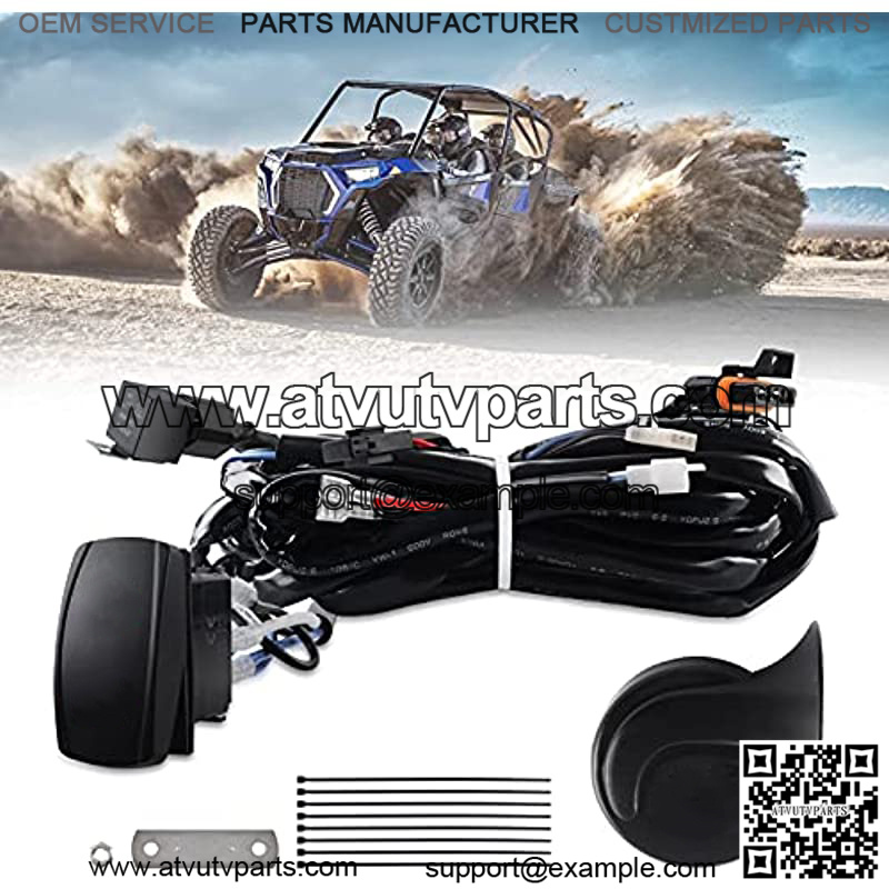 Universal horn kit compatible with UTV vehicles such as RZR 570RZR XP 1000, RZR 900, Pro XP, Ranger 1000, Maverick X3 and so on.