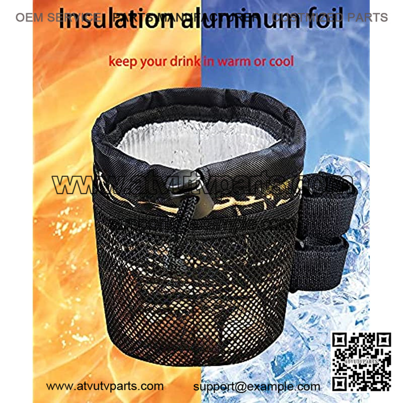 Insulation aluminum foilOur UTV cup holder is insulated to keep your drinks cool in hot summer and warm in winter.With a special aluminum material inside.