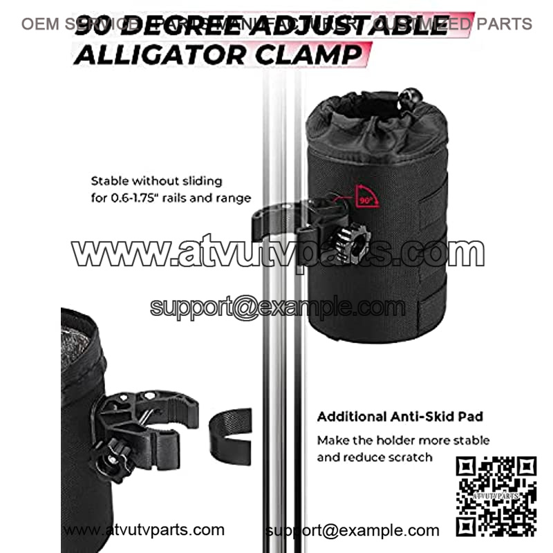 Upgrade Alligator ClampNew alligator clamp: two screws + one gasket + one rubber pad+internal anti-scratch cup Velcro, this makes our ATV cup holder more stable, avoiding loose screws and scratching your cup.Fits 0.6″-1.75″ tube.