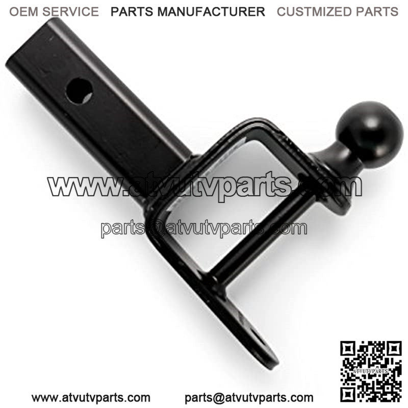 Easily mounts to your ATV or UTV hitch receiver to provide a hitch ball, winch strap loop and ” pin hole for yard work equipment, utility trailers and other towable accessories