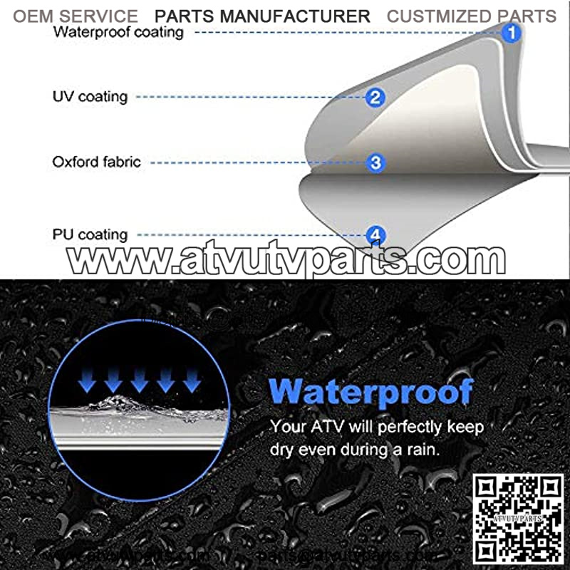 DURABLE MATERIAL THAN OTHERSL—-oxford cloth and our special textile process(Waterproof PU coating). which is more weather-resistant, tear-resistant, and wear-resistant. The entire 4 wheeler cover is made of precision two-thread stitching, absolutely enough firm at the seams. Its product life is 2 times and more than most other ATV Covers.
