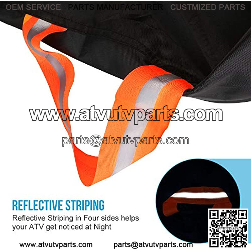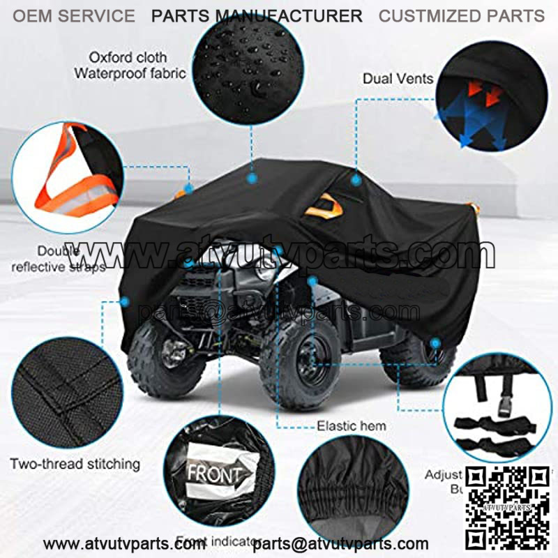 Functional upgrade: All-in-one scientifically cut design for maximum waterproof resistance,Reflective Strips-enhance the safety for parking at night, Dual air vents reduce inside moisture,Adjustable dual bandage prevent the ATV cover from being blown away. “FRONT” Mark: It’s convenient to install the cover in your ATV.