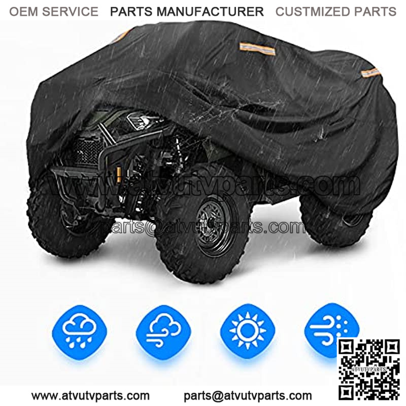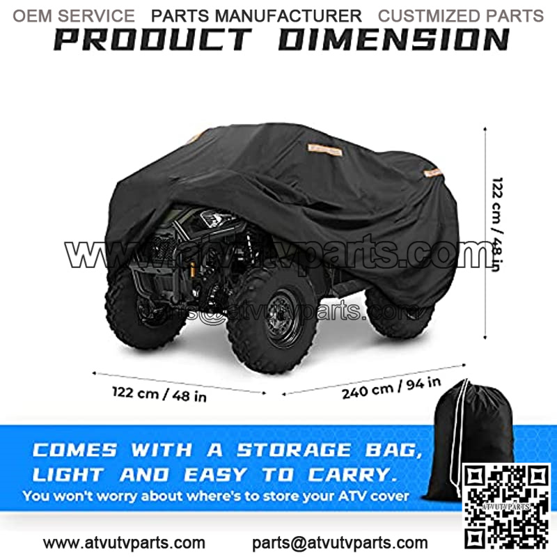 Universal FitThe size of Outdoor Storage ATV Cover is 100” x43” x 47”, large enough to easily fits most ATV models. Compatible with Polaris Sportsman 500; Compatible with Polaris Scrambler; Compatible with FourTrax 300; Compatible with Can-Am Outlander 570 450 etc HANDY STORAGE BAGYou can fold and store it in the handy storage bag, while you are out riding.