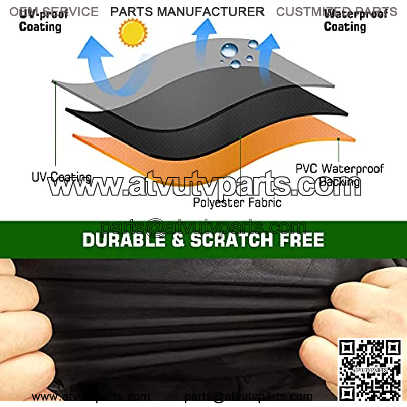 Our unique Heavy-duty UV & Water repellent treated fabrics covers is protects against rain, wind, snow, sun, bird poop, tree sap, and dirt and won’t crack in cold weather, protect UTV from sun, rain,water damage.