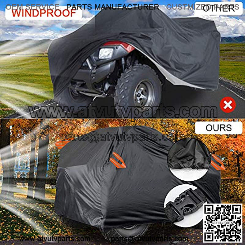 Versatile Uses – The ATV cover waterproof features is perfect for most types atvs, Polaris Sportsman Yamaha Grizzly Honda Four Trax Kawasaki KFX Ranger, Suzuki, Honda, 4 Wheel Car.