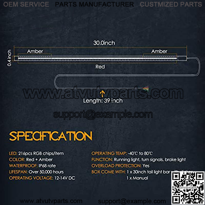 BOX COME WITH – 30 inch LED tail light strip with sticker, manual. Quickly email responded within 24 hours and good after-sales service.
