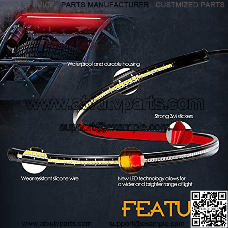 EASY & CLEAN – No need to drill holes. This universal tail light strip features slim housing with black interior for easy installation and hide. Can be mounted on locations like rear crossmember, hitch cargo carrier, roof rack, tailgate, bumper, etc.. Fit for all 12V vehicles, ATV, UTV, Golf Cart, Club Car, Polaris RZR Ranger, Can-Am, Yamaha, 4 Wheeler, Car, Wrangler, Ford, Pickup, Truck, Trike, Trailer, SUV, Off-Roadehicle, and more!