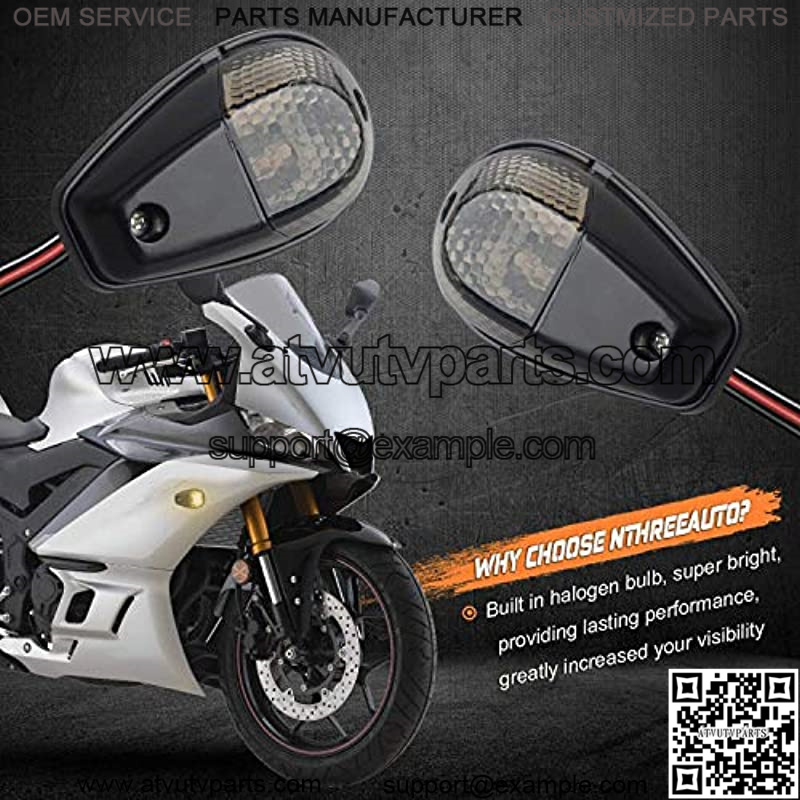 Universal for Most MotorcyclesThe smoked turn signals designed to fit all 12V motorbike. Compatible with Honda, Suzuki, Kawasaki, Yamaha, Sports bikes, Cruisers, Scooters, ATV, Quad, UTV, Dirt Bike.