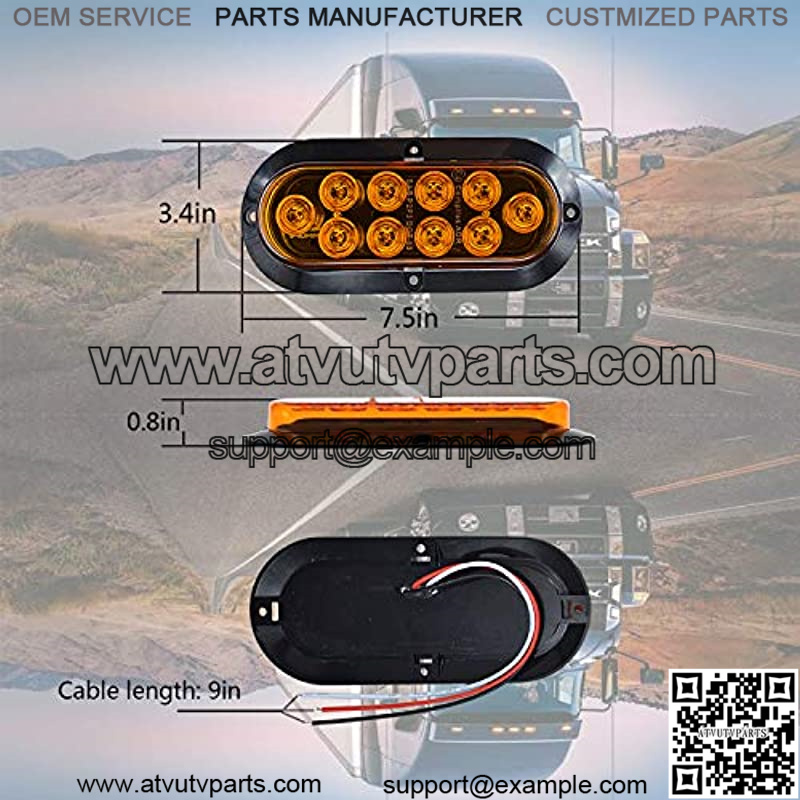 ENERGY SAVING : 6 Inch Oval Amber 10 LEDs Side Marker Clearance Lamp Work on 12v DC : 3 wires with 2 steps Brightness ,These amber LEDs of led trailer utility lights draw less current, generate less heat and are brighter and light faster than an incandescent bulb.