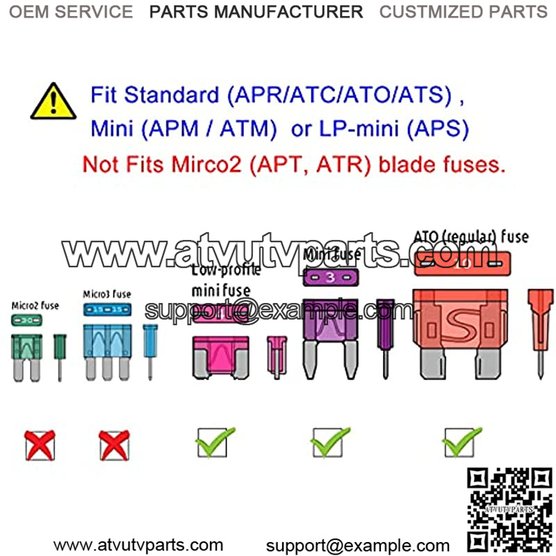 3-TYPE WIDELY USE – MuHize ATC/APR/ATO+ATM mini automotive replacement fuse assortment kit w/A puller are specifically designed for Cars, Trucks, SUVs, Vehicles, ATVs, UTVs, Camper RV, Motorcycles, Fleet, Golf Car, Boat, Snowmobiles, and most general DC applications etc, covering such components as radio, light, turn signals, etc.