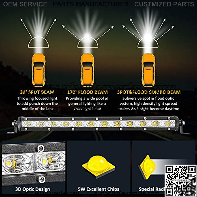 Durable Die-cast Aluminum Alloy ShellThis IP67 waterproof slim light bar with 6063 aviation aluminum housing,the surface is treated with anti-oxidant,it works fine under any condition with shock resistance/waterproof/anti-dust performance.