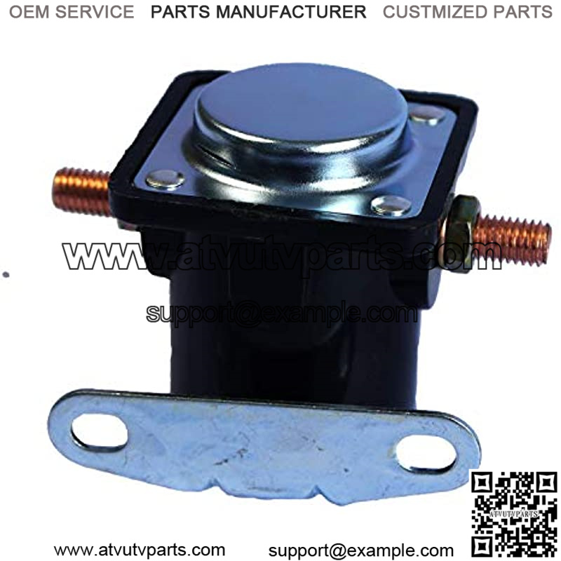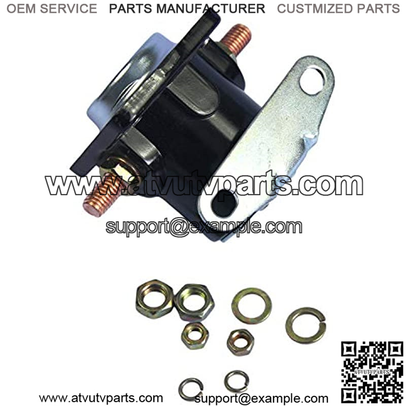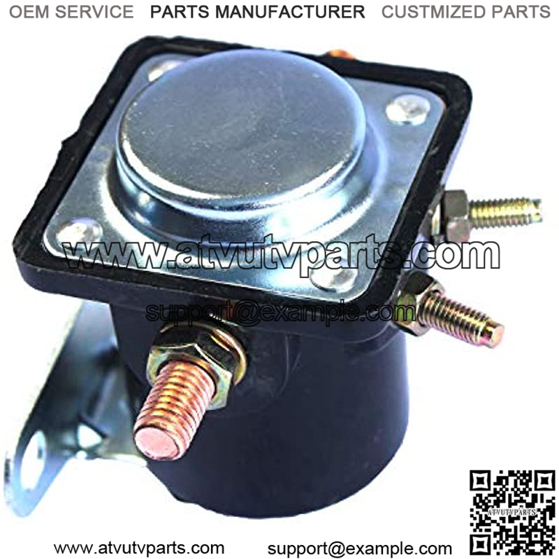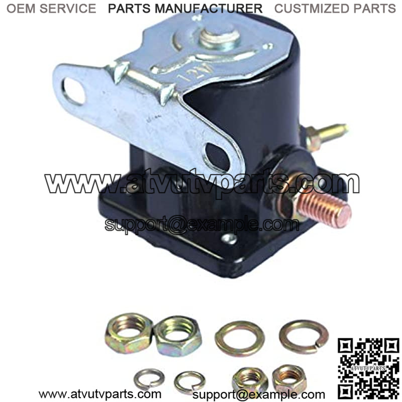 12-volt, 4-terminal and grounded base. Battery terminal 5/16-24, motor terminal 5/16-24, switch terminal 10-32 post, relay terminal 10-32 post
