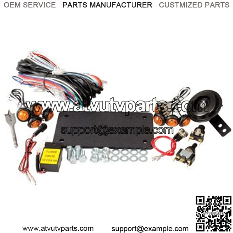The UTV Horn & Signal Kit is designed to be a simple way to provide front and rear turn signals, horn, and license mount for your UTV. This kit is easy to install with a few common tools. The components have universal applications and will work on almost any UTV. Kit comes complete with wiring harness, LED front and rear turn signals, flasher relay, horn, license mount, horn button, and blinker switch.