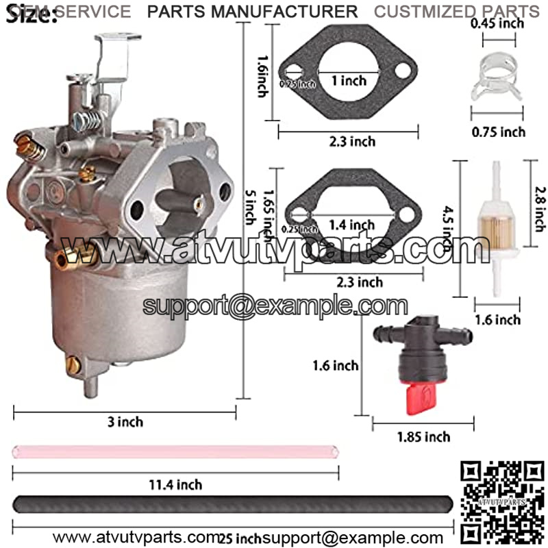 Package include: 1* carburetor,2* gaskets,1* fuel shut off valve, 2* fuel filters, 2* fuel lines, 4* clamps