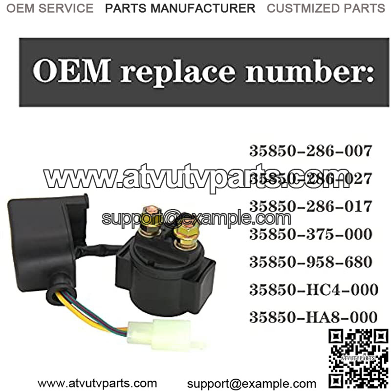 Chinese atv solenoid OEM replace number: 35850-286-007, 35850-286-027, 35850-286-017, 35850-375-000, 35850-958-680, 35850-HC4-000, 35850-HA8-000.