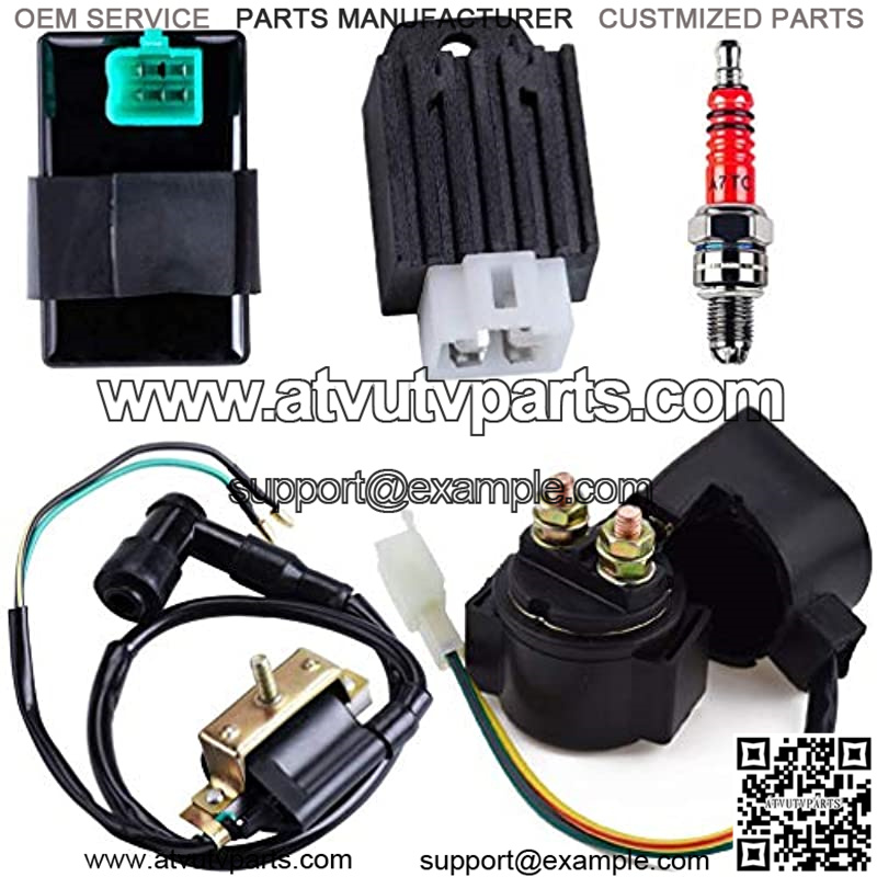 Solenoid Relay 2-Wire Ignition Coil 5 Pin CDI Box Regulator Rectifier Spark Plug for 4-Stroke 50cc 70cc 90cc 110cc 125cc ATV Dirt Bike Go Kart Compatible with Kazuma Taotao Coolster Parts