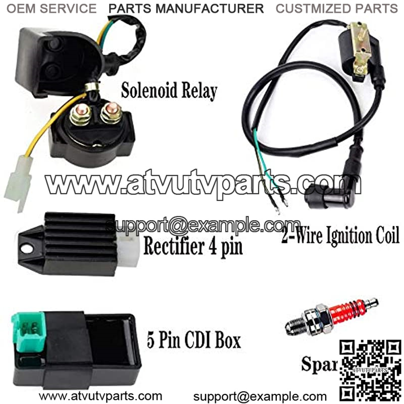 Ignition Coil 5 Pin CDI Box Solenoid Relay Voltage Regulator Rectifier Spark Plug for 4-Stroke 50cc 70cc 90cc 110cc 125cc ATV Dirt Bike Pit Bikes Quads.Compatible with Kazuma Meerkat 50cc Falcon 70cc 90cc 110cc Taotao Roketa Coolster 110CC ATV 3050B X15 X 18 R Nitro X19 SSR Pocket Bike Scooters Quad 4 Wheelers Moped.
