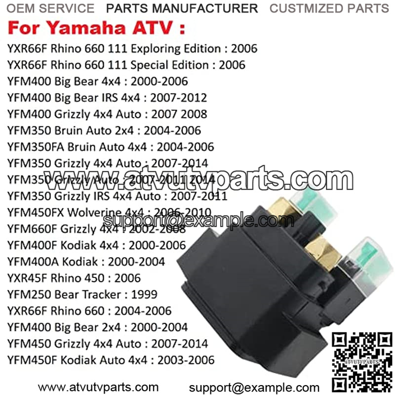 FIT FORStarter Solenoid For Yamaha ATV YFM660F Grizzly 2002-2008 /YFM450 Grizzly 2007-2014 /YFM400 Grizzly 2007 2008 /YFM350 Grizzly 2007-2014 ***YFM400 Big Bear 2000-2012 ***YFM350 Bruin 2004-2006 ***YFM450FX Wolverine 2006-2010 ***YFM450 Kodiak 2003-2006 /YFM400 Kodiak 2000-2006 ***YXR66F Rhino 660 2004-2006 /YXR45F Rhino 450 2006 ***YFM250 Bear Tracker 1999