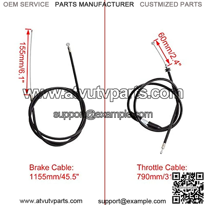 SIZEHandlebar installation diameter:22mm/0.87″,Brake lever length:120mm/4.7″;Brake cable length:1155mm/45.5″Including moving length;Cable moving length:155mm/6.1″;Throttle cable length:790mm/31.1″Including moving length;Cable moving length:60mm/2.4″;(As the picture shows)