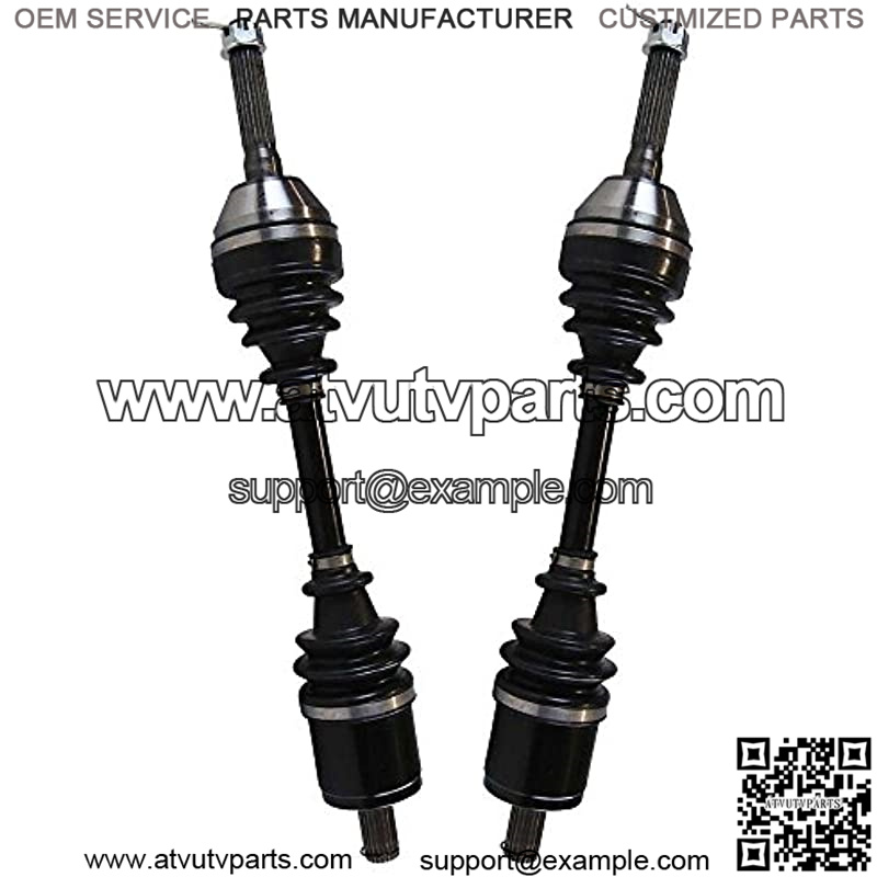 This package contains 2 front CV axle shaft assemblies. Each 40CR steel axle shaft is assembled with molybdenum disulfide lithium grease and heavy gauge neoprene puncture resistant boots to increase performance and withstand extreme high and low temperatures.