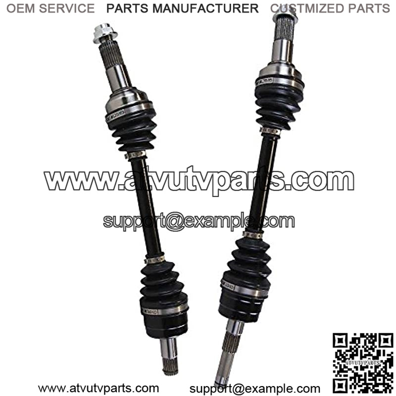 This package contains 2 front CV axle shaft assemblies. Each 40CR steel axle shaft is assembled with molybdenum disulfide lithium grease and heavy gauge neoprene puncture resistant boots to increase performance and withstand extreme high and low temperatures.