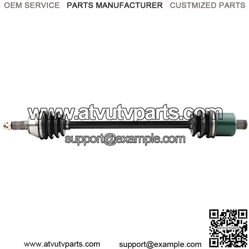 OE replacement constant velocity (CV) Axles for ATVs, UTVs and Side-By-Sides are engineered from the ground up to be the highest quality, most reliable, and toughest CV Axles on the market. Manufactured in a state-of-the-art ISO9001 and TS16949 certified factory, they are designed to withstand the most rigorous conditions and combat rough terrain, water, mud, and sand. Each application is torture tested to failure to ensure maximum durability. To increase performance and longevity, OE replacement CV Axles feature a solid chrome steel center shaft that is up to 20% stronger than OEM. The CV axle joints are packed with high temperature, high performance moly grease and are constructed to work at varying angles and constant rotational speeds without friction or play. OE replacement CV Axles for ATVs, UTVs and Side-By-Sides exceed OEM quality in fit, form and function, come fully assembled for easy installation with no modifications required, and include a one year limited warranty. OE replacement CV axle features: exceed OEM quality in fit, form and function torture tested to failure to ensure maximum durability manufactured in a state-of-the-art ISO9001 and TS16949 certified factory work at varying angles and constant rotational speeds without friction or play induction heat treated joints packed with high performance moly grease precision machined and heat treated solid chrome steel center shafts precision machined and heat treated cages, races and ball bearings precision rolled splines and threads improve fitment and wear high strength spring steel retaining clips (where required) All new dust rings and guards (where required) high quality neoprene rubber dust boots secure stainless steel dust Boot clamps fully assembled for easy installation no modifications required to install All necessary hardware included one year limited warranty.