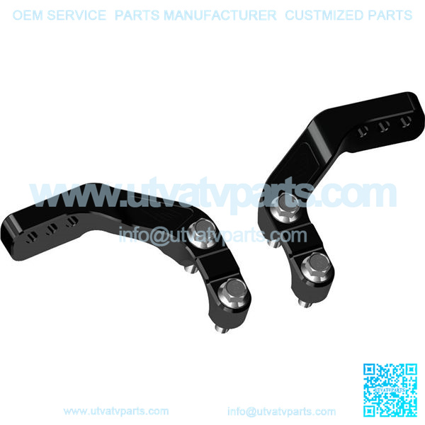 Handlebar Clamp Mounts forged from 6061 aircraft grade 6061 aluminum. This forging process results in peak strength. Three holes for location adjustment to accommodate a wide variety of wrap around handguards. Perfect for use with Probends. Form fitted design allows excellent clearance around hoses and cables. These angles are a perfect match for various bends of handguards.
