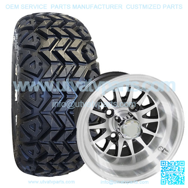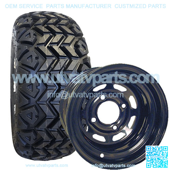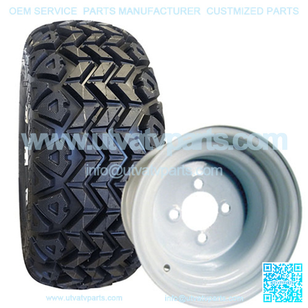 This 10″ Golf Cart Tire & Wheel Combo (pre-mounted tire) is for off-road use on ALL 5″+ LIFTED GOLF CARTS (CLUB CAR, EZGO, YAMAHA, ETC.).