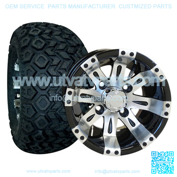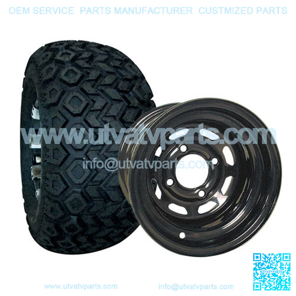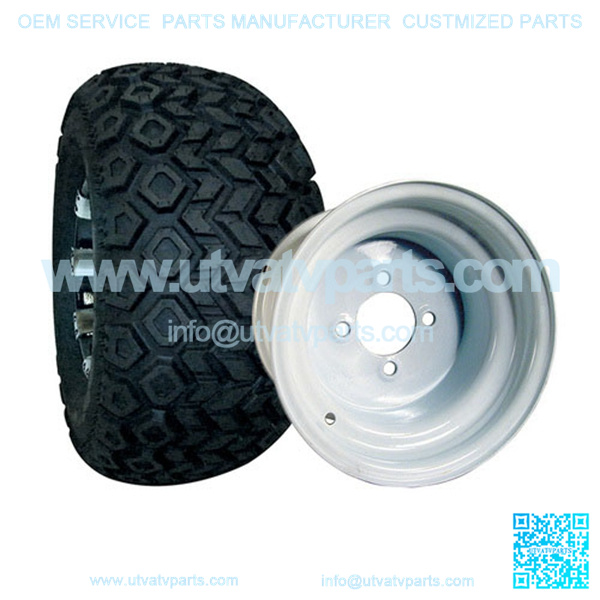 This 10″ Golf Cart Tire & Wheel Combo (pre-mounted tire) is for offroad use on ALL GOLF CARTS (LIFT KIT MAY BE REQUIRED – SEE BELOW). Club Car & Yamaha (not Drive) 3″-4″+ lift kit is recommended to prevent rubbing. You will NOT need a lift kit for the following: EZGO TXT or RXV (2007-NEWER) EZGO TXT or MEDALIST (1994-2006) May require some minimal body cuts, but still no lift kit required Yamaha Drive (G29)