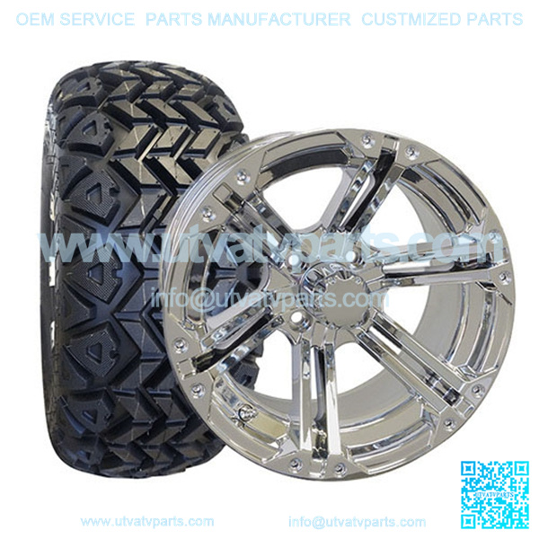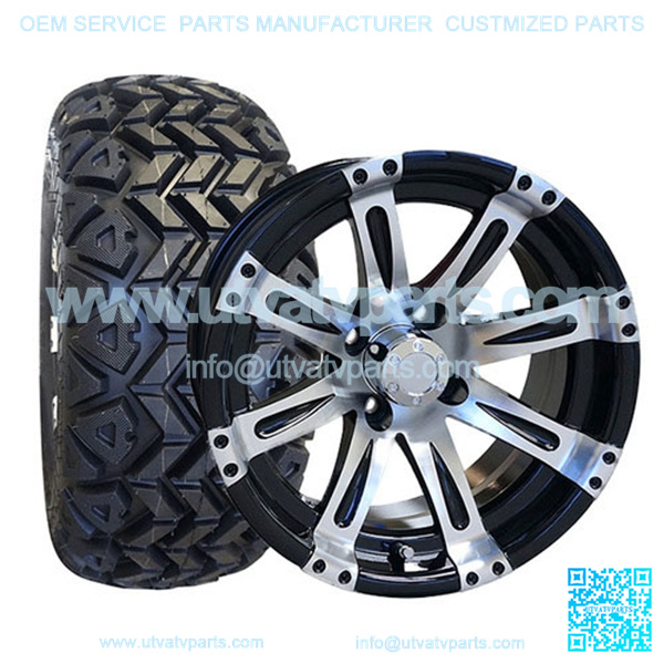 This 14″ All Terrain Golf Cart Tire & Wheel Combo (pre-mounted tire) is made for off-road use on ALL 6″ LIFTED GOLF CARTS (CLUB CAR, EZ-GO (5″ lift), YAMAHA.