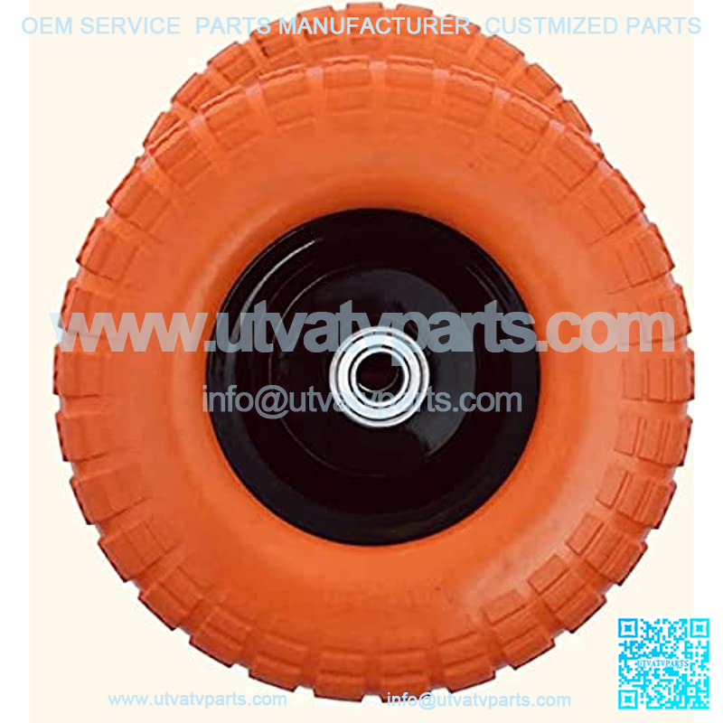 2-Pack 10″ Flat Free Tires Air Less Tires Wheels with 5/8″ Center – Solid Tire Wheel for Dolly Hand Truck Cart/All Purpose Utility Tire on Wheel (Orange)