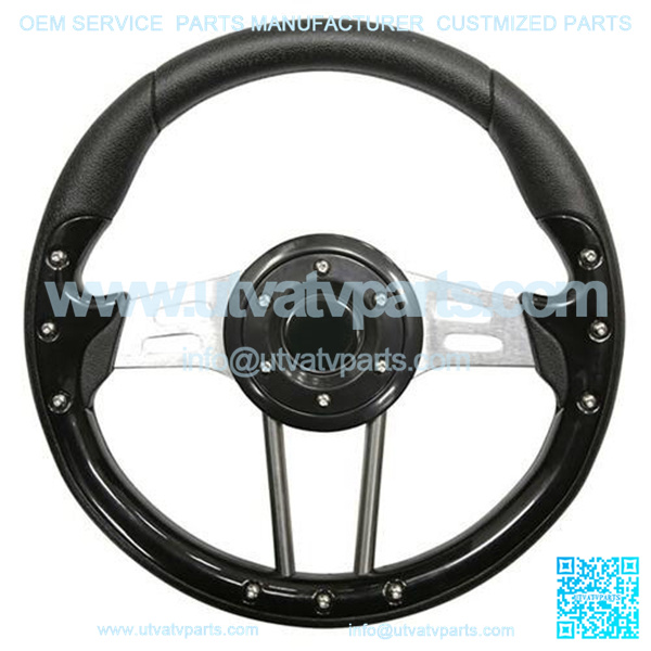 Color: Black Grip with Brushed Aluminum Spokes. Easy installation on E-Z-Go, Club Car and Yamaha with Custom Adapter (sold separately). Horn button is for aesthetic purposes only.