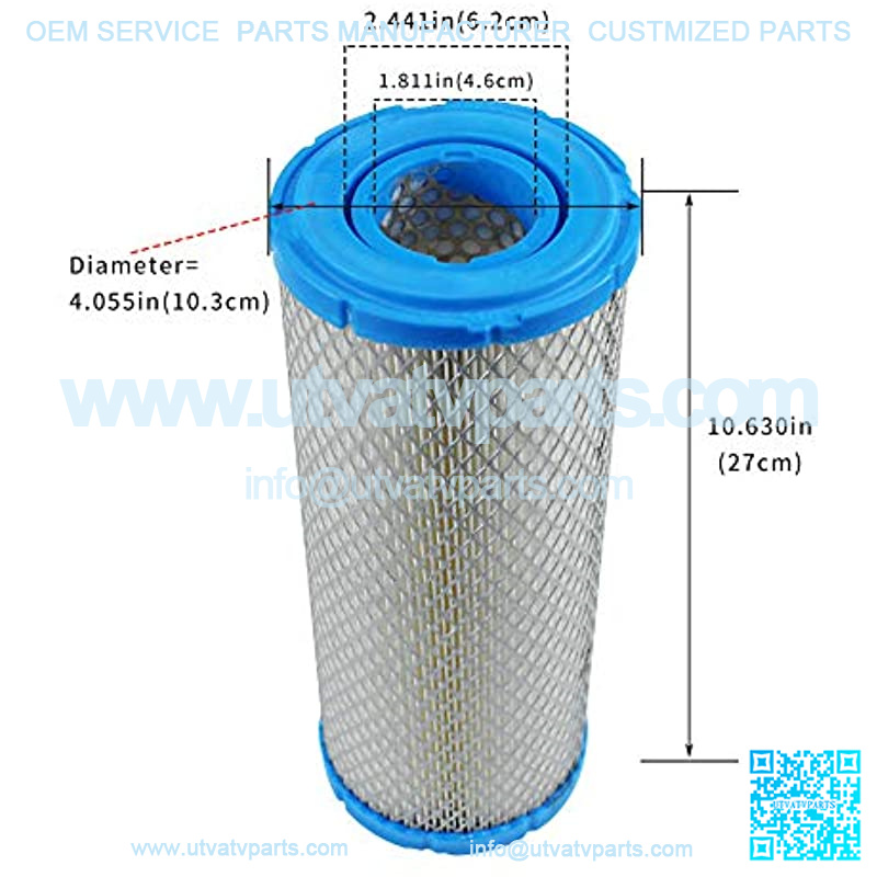 Outer Pre Filter for Kohler: 25 083 01, 25 083 01-S; Ariens: 00181071,21536900,21537000, 21538600; Bobcat: 4114746,4164630,6672467; Bad Boy 063801900; Briggs & Stratton: 4235, 841497; Club Car: 102498601; Exmark: 103-1327; Ferris: 5022892X1, 5023141, 841237; Grasshopper: 100936; Gravely: 21536900, 21537000, 21538600; Hustler: 785261; John Deere: M131802, M144100, M164264, MIU12457, PMAF25551, RG60690; Kawasaki: 11013-7020, 11013-7044;Kubota: TA040-93230;Land Pride: 839-323C;New Holland: 86519866