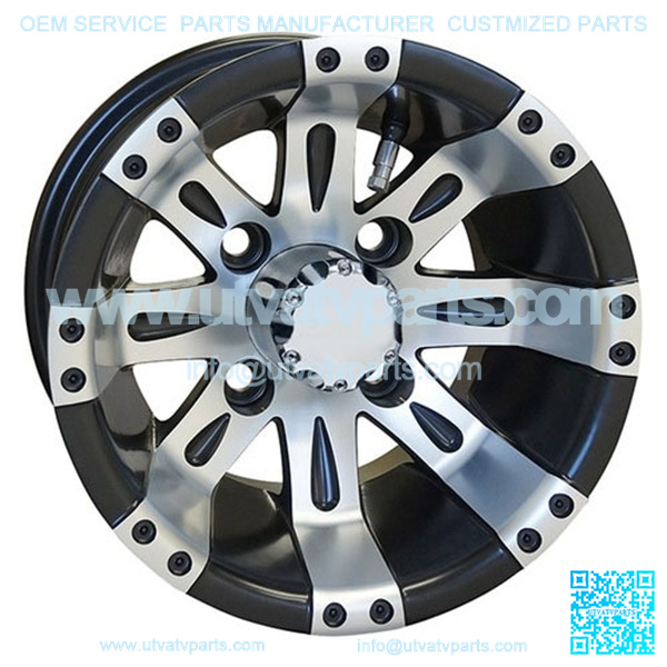 10″ Golf Cart Rim, Machined Matte Black Wheel & Center Cap, 10×7 ET-25. PRODUCT INCLUDES 1 RIM.