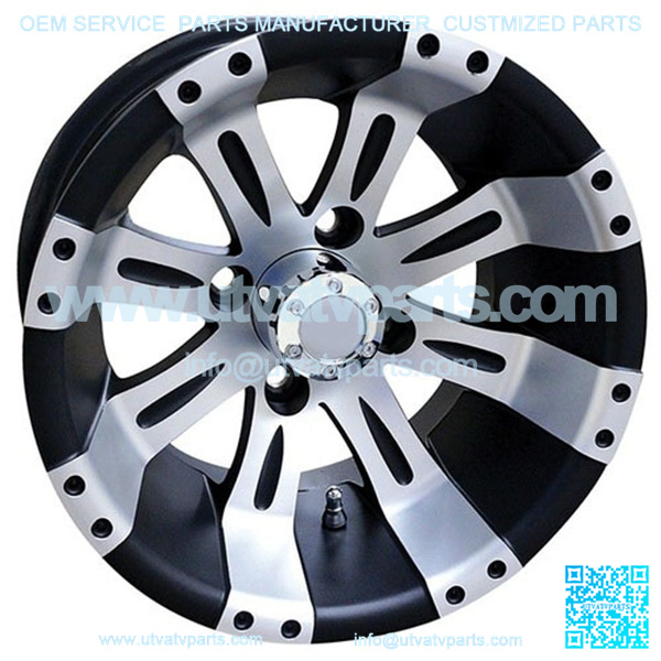 12″ Golf Cart Rim, Machined Matte Black Wheel & Center Cap, 12×6 Centered Specially designed for golf car use. Eliminates water sling and fender rubbing. Fits inside wheel wells. Aluminum wheels include center caps. Lug nuts sold separately. PRODUCT INCLUDES 1 RIM.
