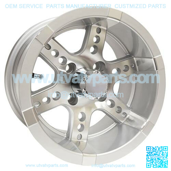 12″ Golf Cart Rim, Machined/Silver Wheel & Center Cap, 12×7 ET-25 Aluminum wheels include center caps. Lug nuts sold separately. PRODUCT INCLUDES 1 RIM.