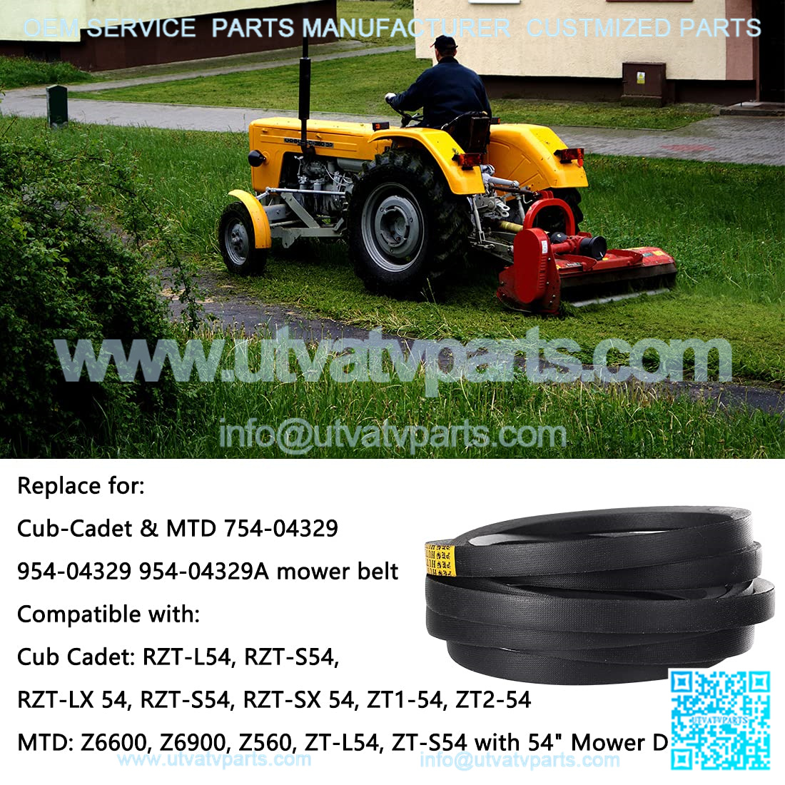 Part Numbers: Replaces for Cub Cadet 954-04329, 954-04329A, Replaces for MTD 754-04329, 954-04329, 954-04329A, Replaces for Troy Bilt 954-04329A mower belt.