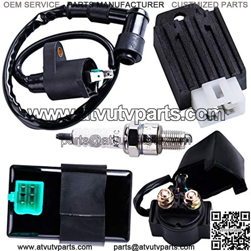 Package contain parts: 5 PINS CDI module + 4-STROKE COIL + SOLENOID + REGULATOR SET + Spark plug