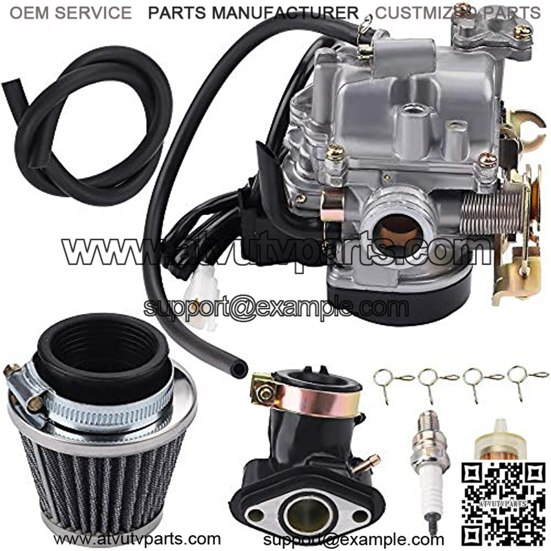 Package: 1 carburetor, 1 air filter, 1 Intake Manifold, 2 feet fuel line, 4 clamp, 1 fuel filter, 1 spark plug