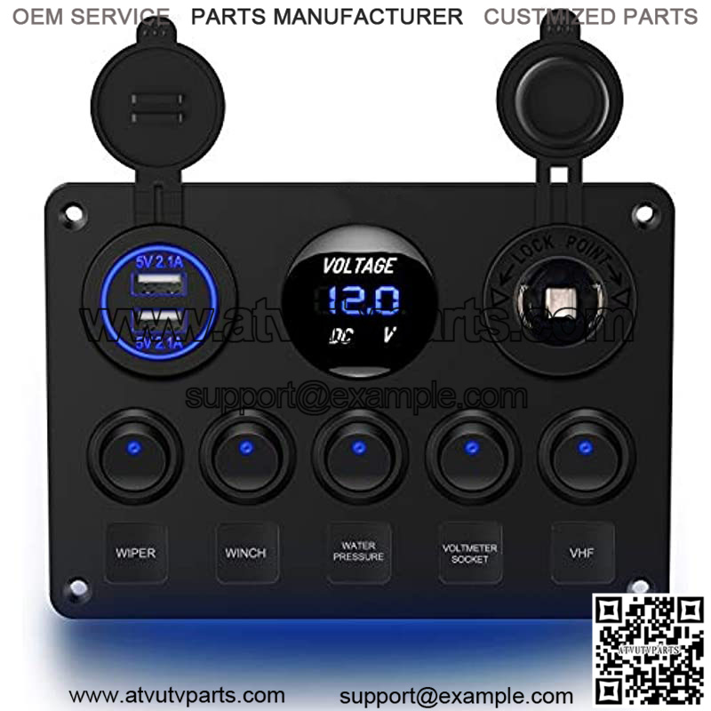 Multi Functional Switch Panel: Product integrated with dual USB port, digital voltmeter, 12V outlet, waterproof board and 5 on / off rocker switches, this 12V/24V electrical panel can meet your various needs
