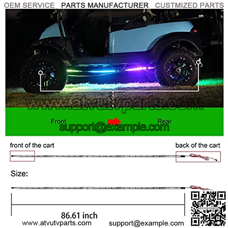 Golf Cart Underglow Neon Accent Strip Multicolor LED Lights Kit provides multicolored and 13 modes. Includes 9 monochromatic gradient modes, 3 flow modes and 1 colorful cyclic flash mode. You can change at any time according to your preferences.