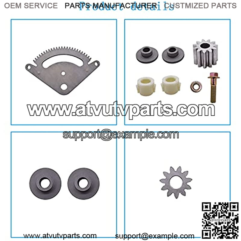 Package include: 1 x set sector plate, pinion gear, nut and bolt, 2 x set metal bushing, 2 x plastic bushing.