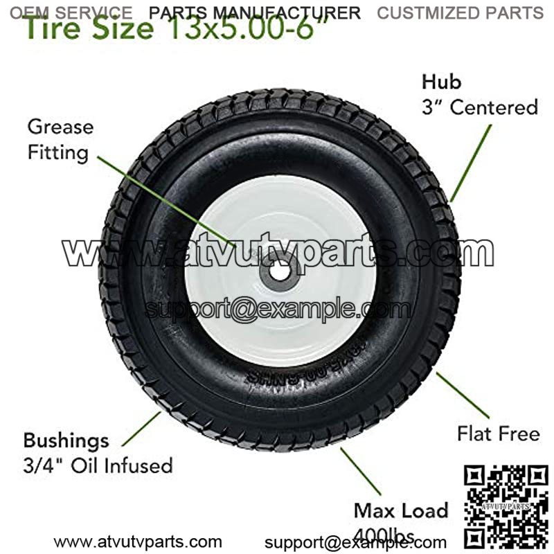30326 13×5.00-6″ Flat Free Lawnmower Tire on Wheel 3″ Hub, 3/4″ Bushings