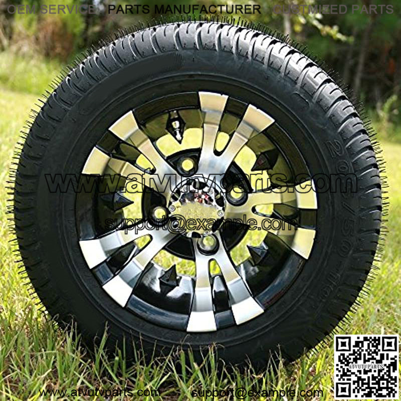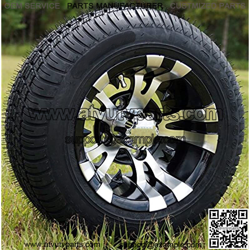 This includes the following: (4) New 205/50-10 Low Profile Tires, (4) 10″x7″ Black Aluminum Wheels, (4) Chrome Center Caps, (16) Chrome Lug Nuts (Note: If you have a Yamaha, please message us to notify you need metric. Otherwise, standard lug nuts will be sent)