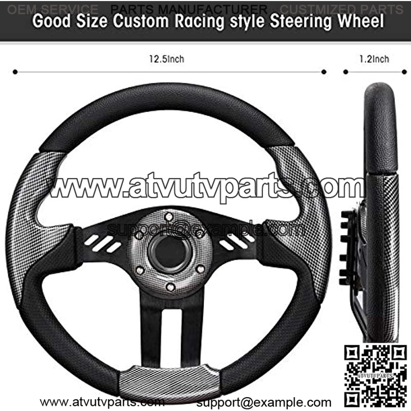 UNIVERSAL FIT 12.5 inch diameter cool racing steering wheel Fits EZGO, Club Car and Yamaha G8 G9 G11 G14 G16 G19 G21 G22 G29/Drive