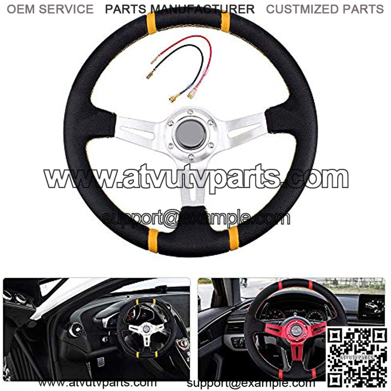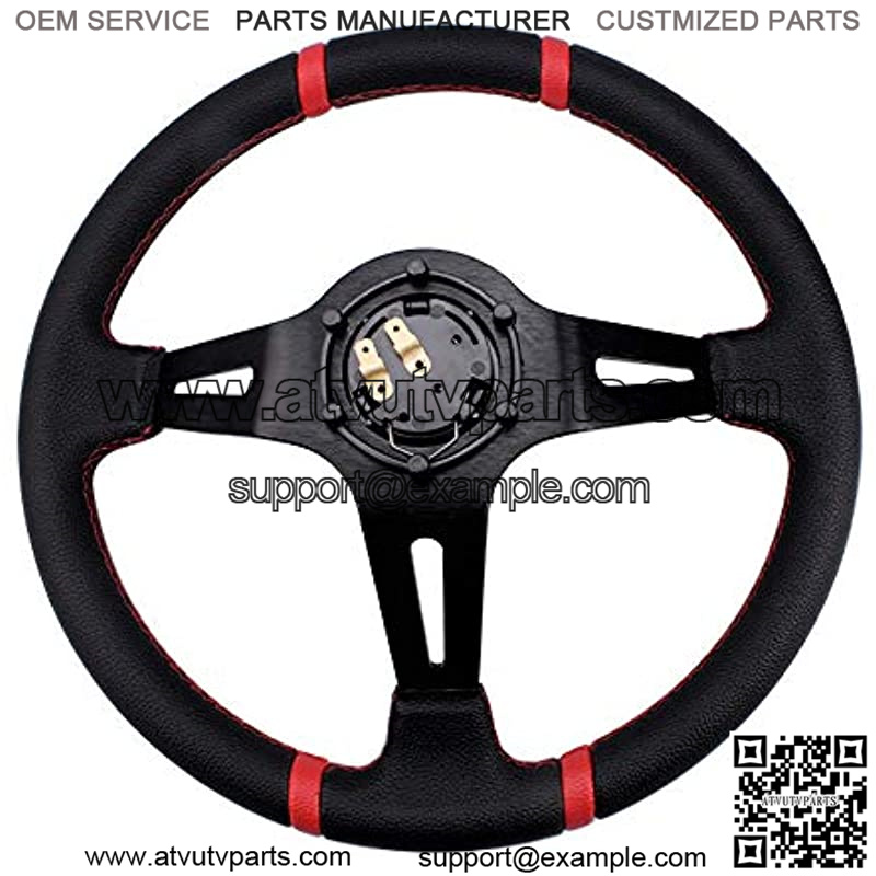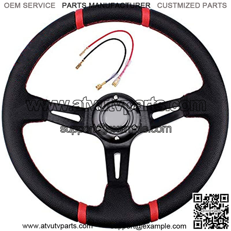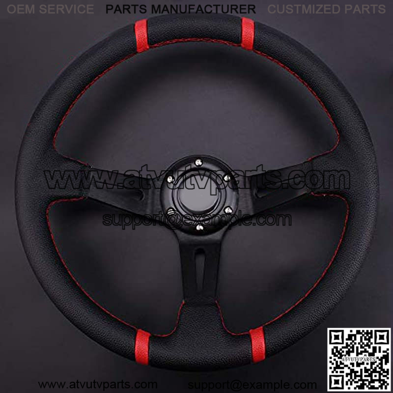 Deep Dish Racing Steering Wheel Universal Leather Embroidery 13.58??/345mm 6 Bolts with Horn Button Include Cable, Wrench (Black)